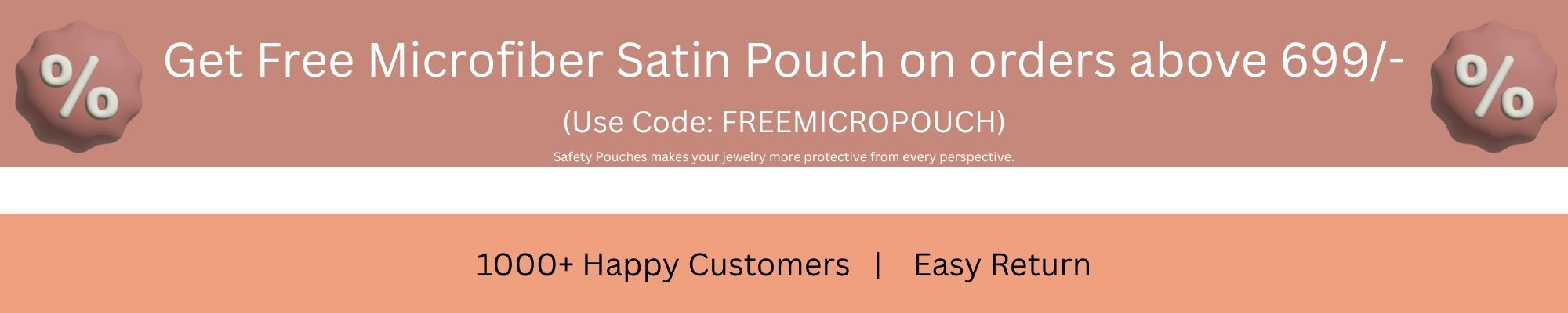 A: To maintain the shine and quality of your jewellery, we recommend storing it in the provided pouch when not in use. Avoid direct contact with harsh chemicals like perfumes, lotions, and sanitizers. For cleaning, simply wipe it gently with a soft, dry cloth.